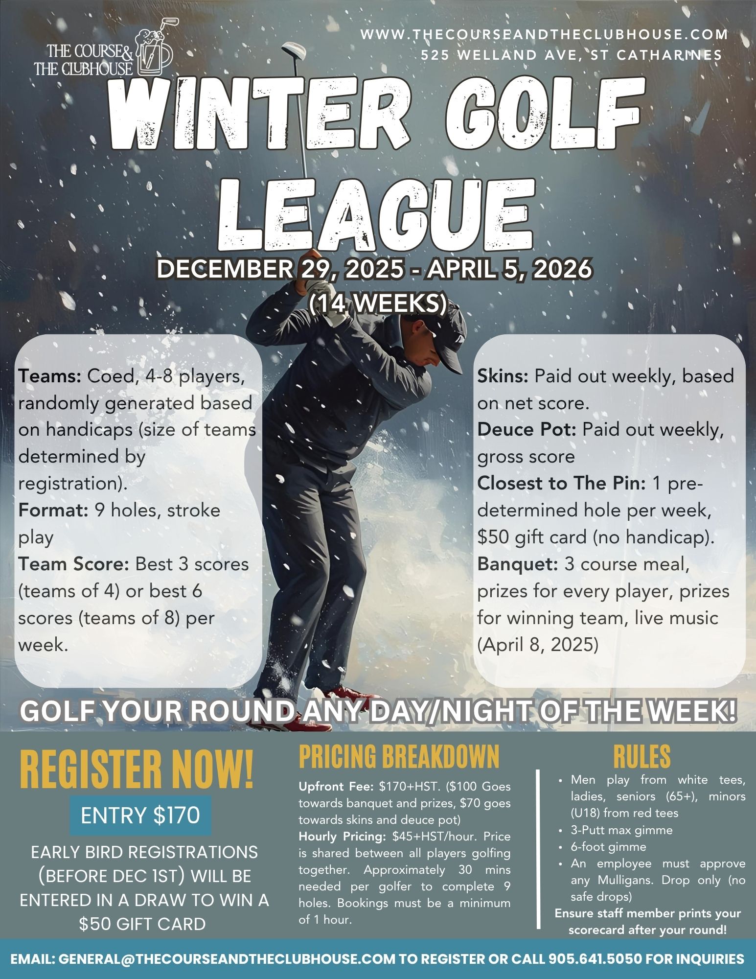 With 5 HD Golf simulators combined with a boisterous sports bar environment, The Course and The Clubhouse has a little something for everyone. Golf with your friends, bring the family for a bite to eat, have a pint, host a corporate event, or play some darts; the possibilities are endless.